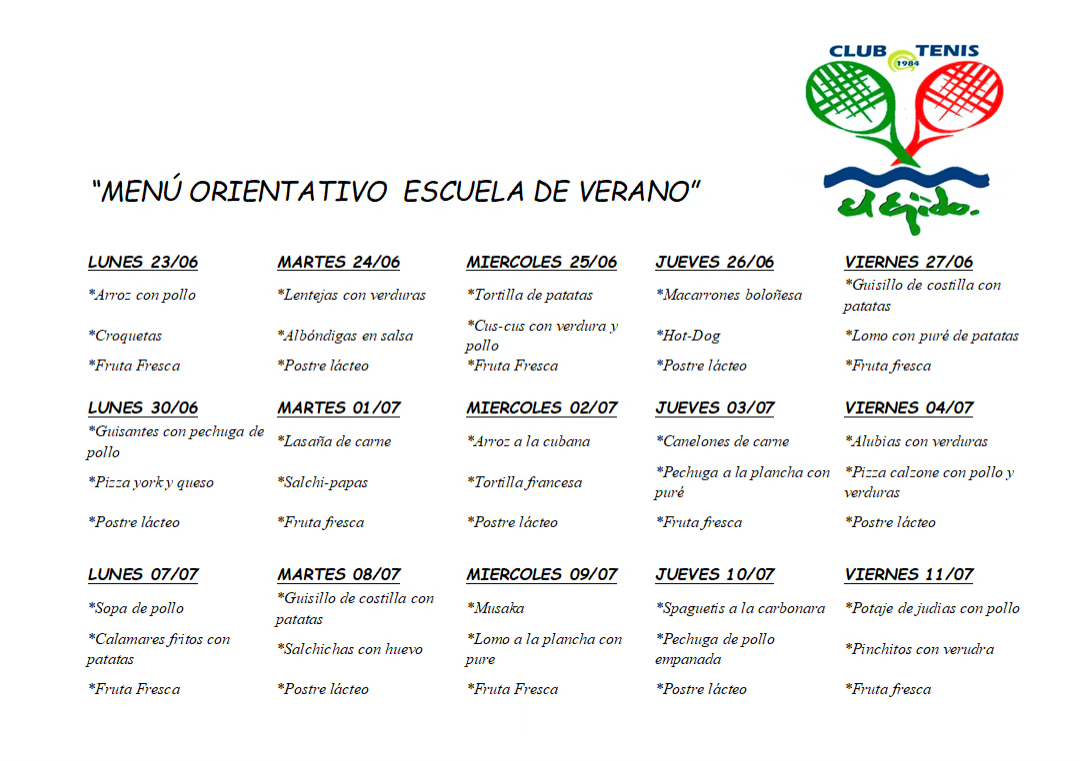 “MENÚ ESCUELA DE VERANO»