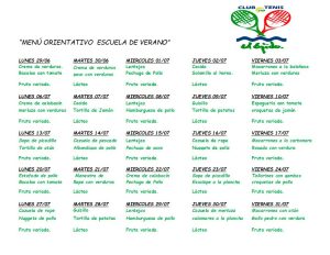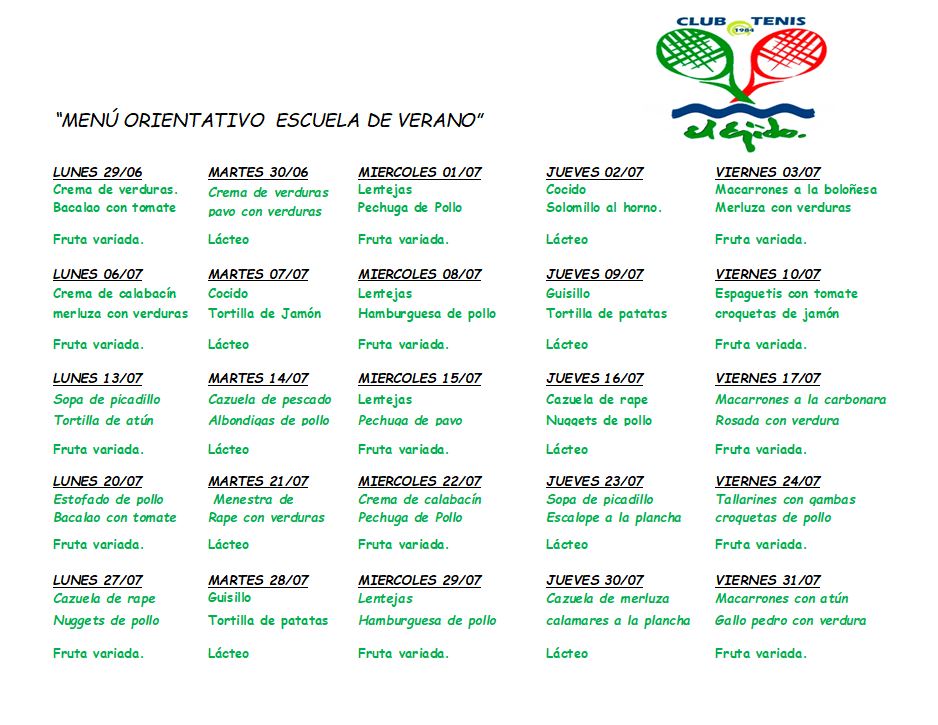 El menú del comedor sigue una dieta equilibrada y variada. A continuación detallamos el menú: